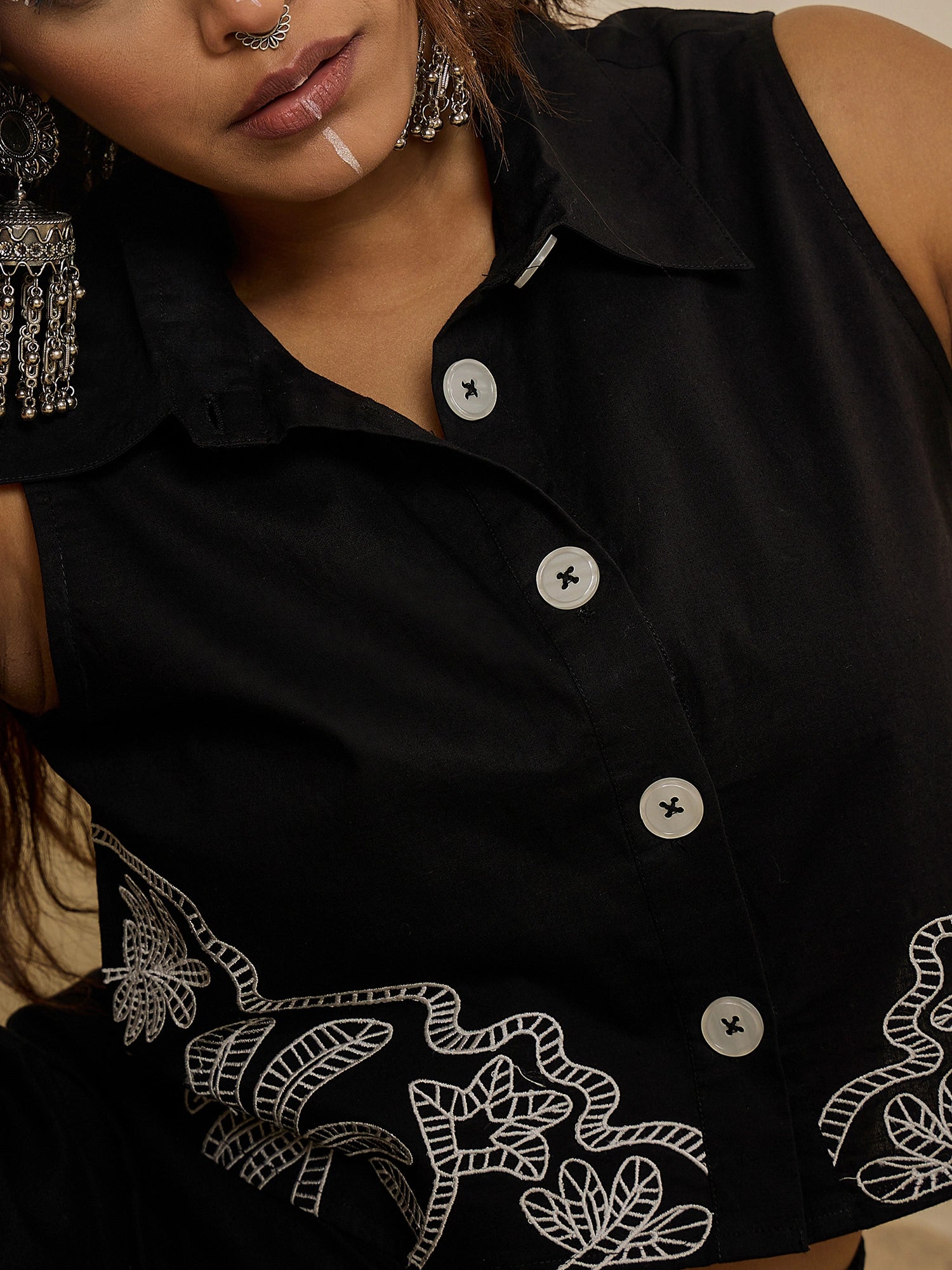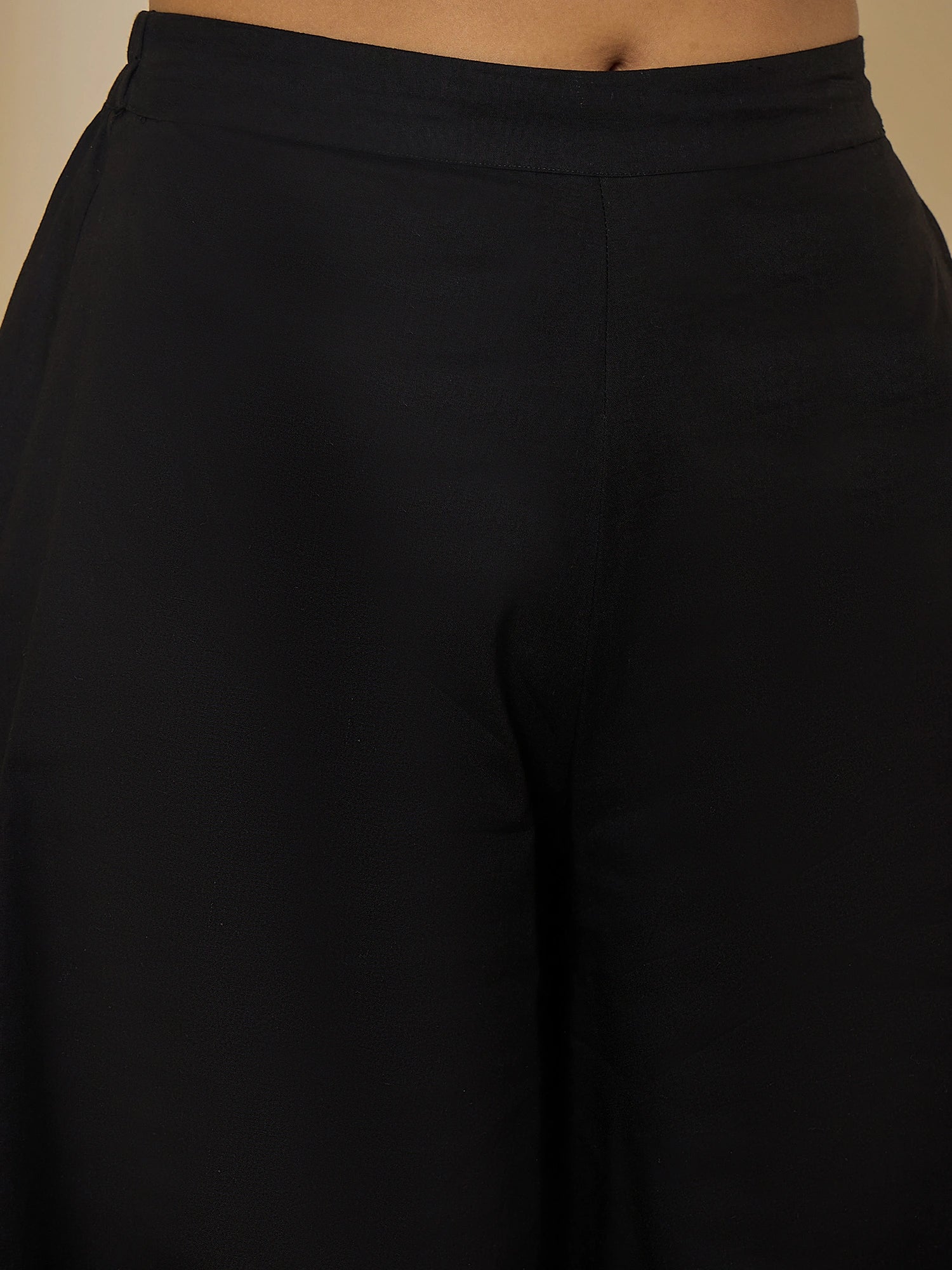 Black Cotton Embroidered Crop Top with flared Pant Co-ord Set