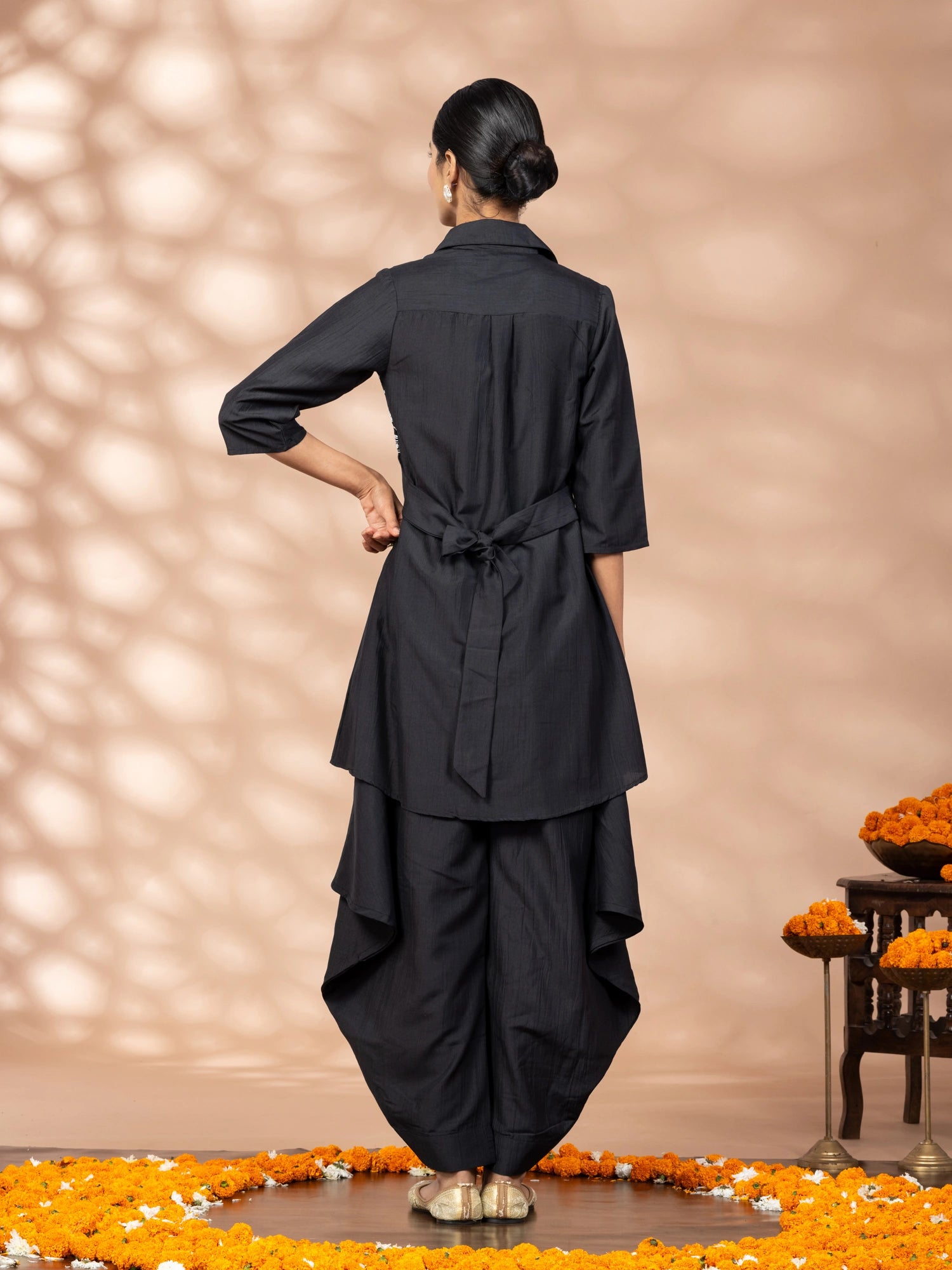 WineRed Women Black Embroidered Tunic with Harem Salwar Co-Set