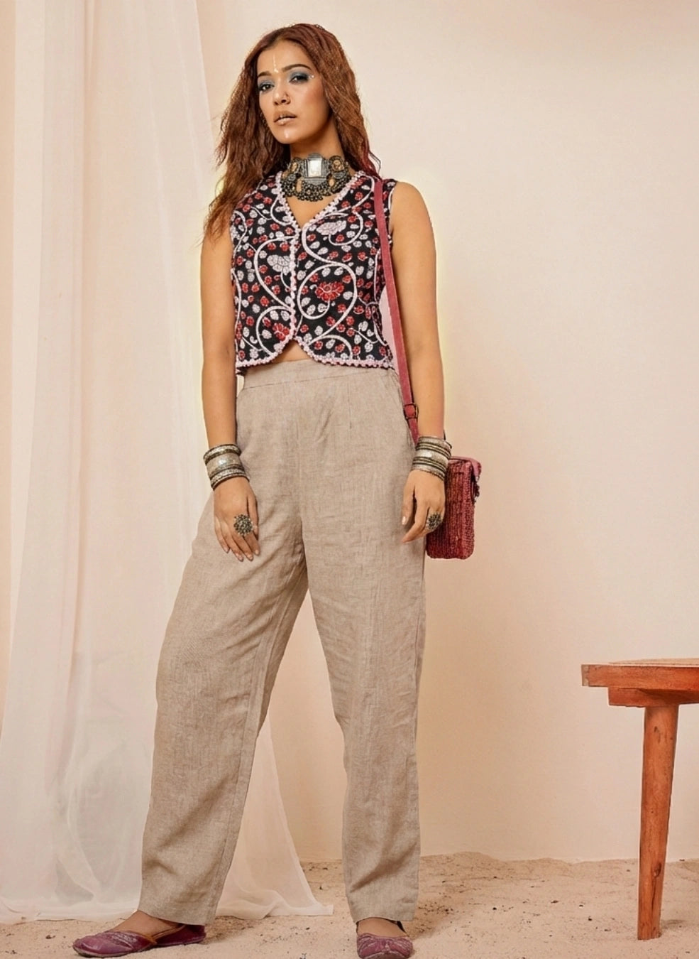 Style tips: Pair this sleeveless ethnic printed top with a matching flared skirt or high-waist palazzos. Complete the look with oxidised jewellery and flats or kolhapuri sandals for an effortless festive-casual vibe.