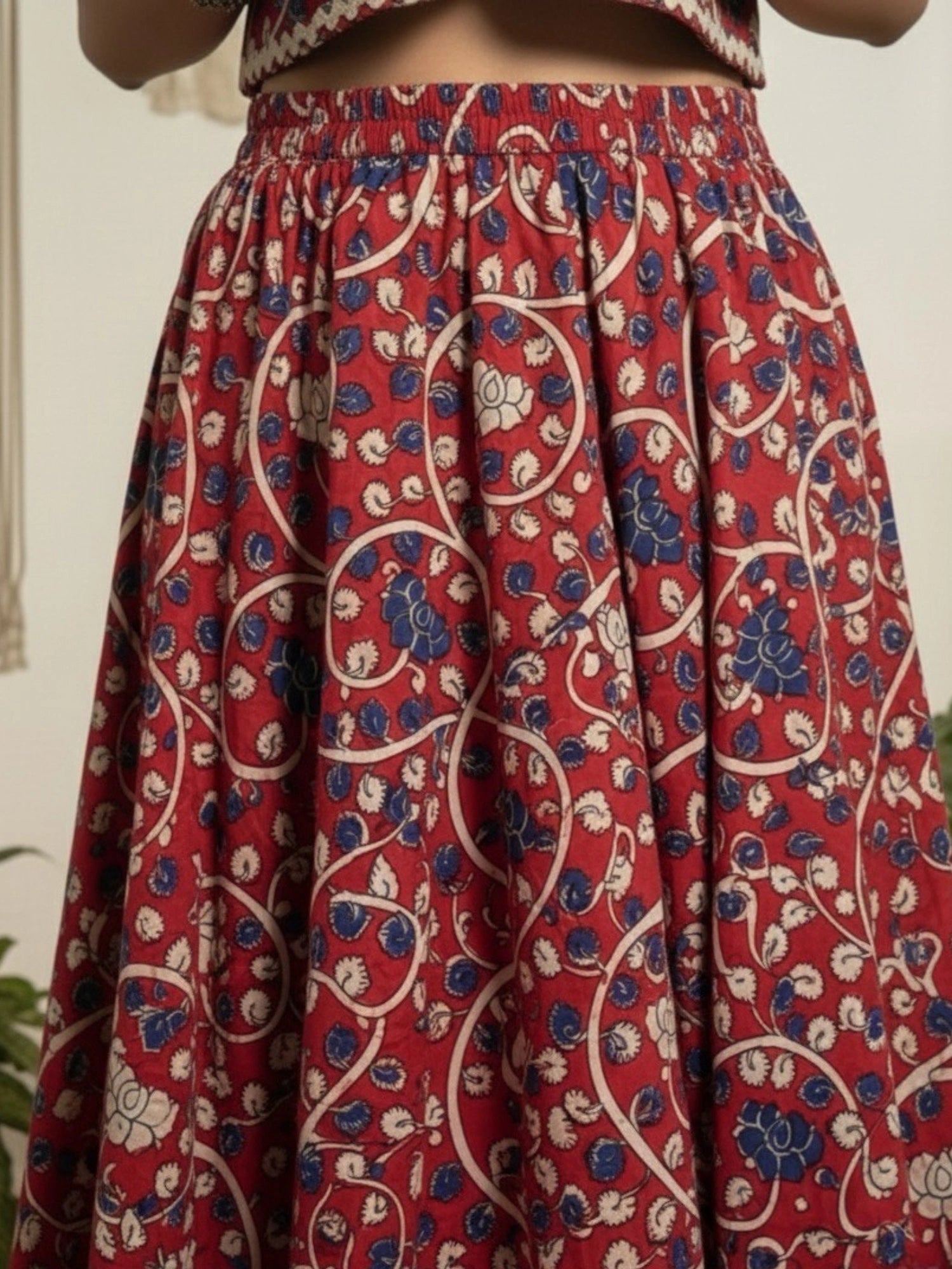Women Red Cotton Lace detailing Waistcoat with Skirt Co-ord Set